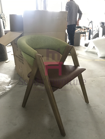Oak Wood Leather Upholstered Restaurant Chair with Crossed Armrests & Soft Backrest